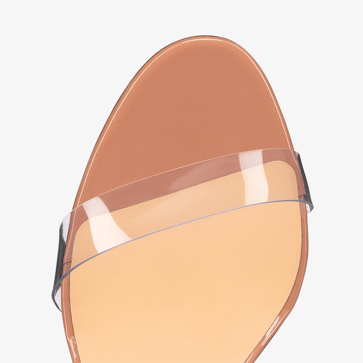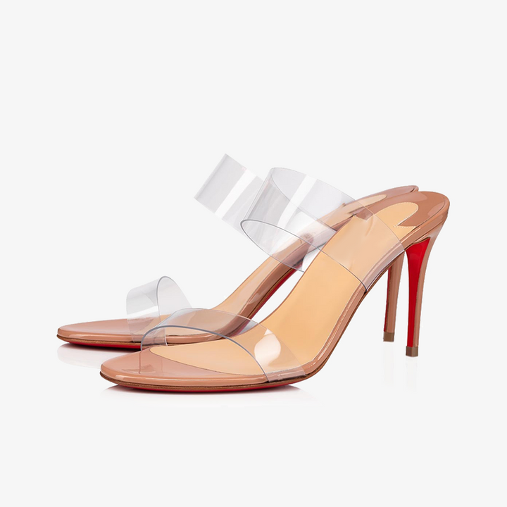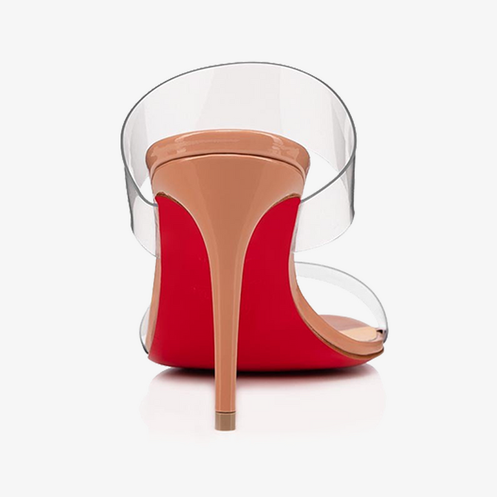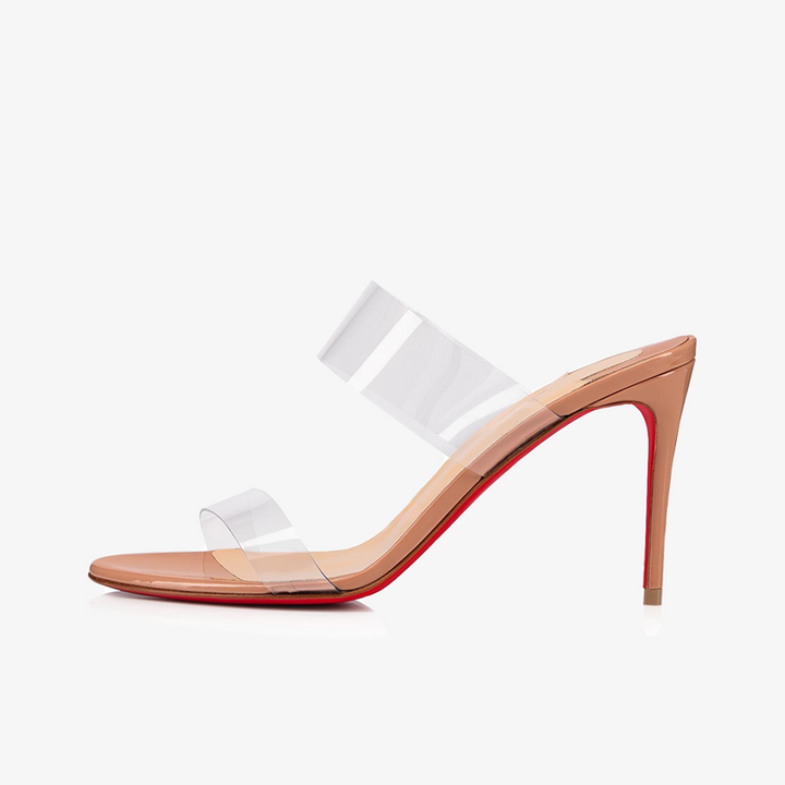 This timeless slider sandal is a perfect blend of elegance and modern design. Crafted in nude Blush patent leather with a transparent PVC upper, it creates a magical barefoot illusion. Set on an 80 mm heel and featuring a signature red sole, it’s ideal for red-carpet looks, chic lunches, or poolside glamour.