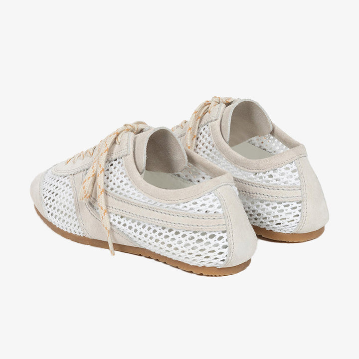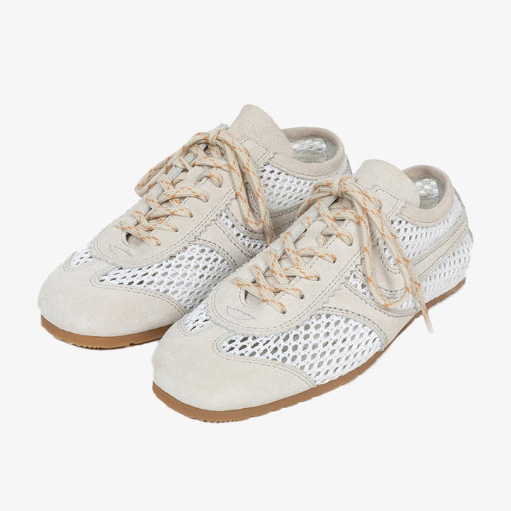 A refined mix of suede and mesh in a versatile beige hue, these sneakers combine breathability with a sleek, modern look. The thin rubber sole offers flexibility and comfort, making them a perfect choice for effortless everyday style.