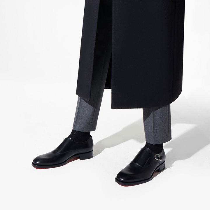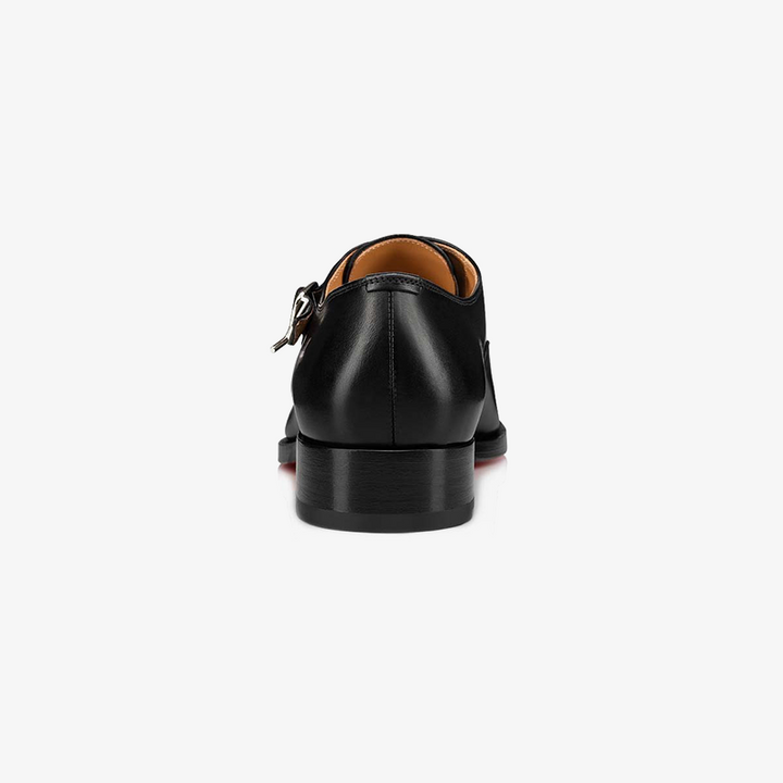 This elegant black calfskin shoe features a tapered silhouette that highlights the foot. With tone-on-tone topstitching for a refined look, it is finished with an adjustable strap and silver buckle for added sophistication and comfort.Upper: 100% calf leather