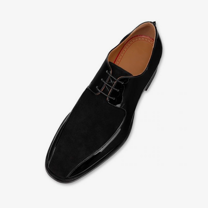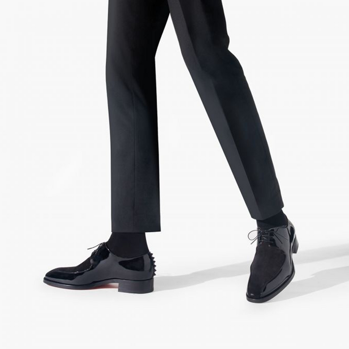 When only the most formal will do, this Derby shoe is the perfect finishing touch for your tuxedo look. With a slightly wider fit, it features hand-shaped quarters and vamp for a refined silhouette. Crafted from black calf leather, this classic model is adorned with a row of signature black glossy spikes down the back of the heel, adding a bold yet sophisticated statement.