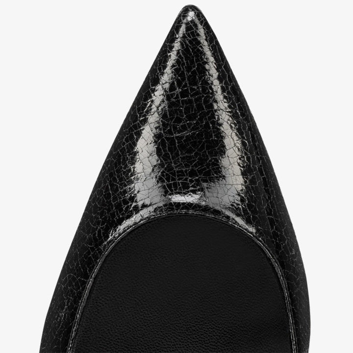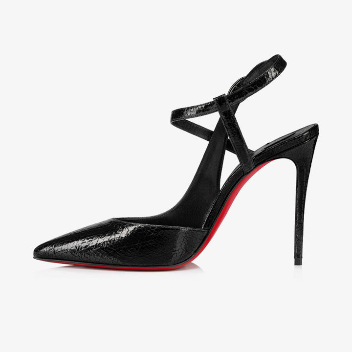 Black Leather Pointed-Toe Heels with Gunmetal Buckle