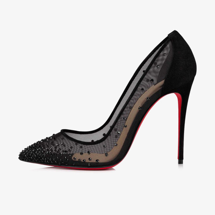 Black Mesh and Strass Embellished Pumps