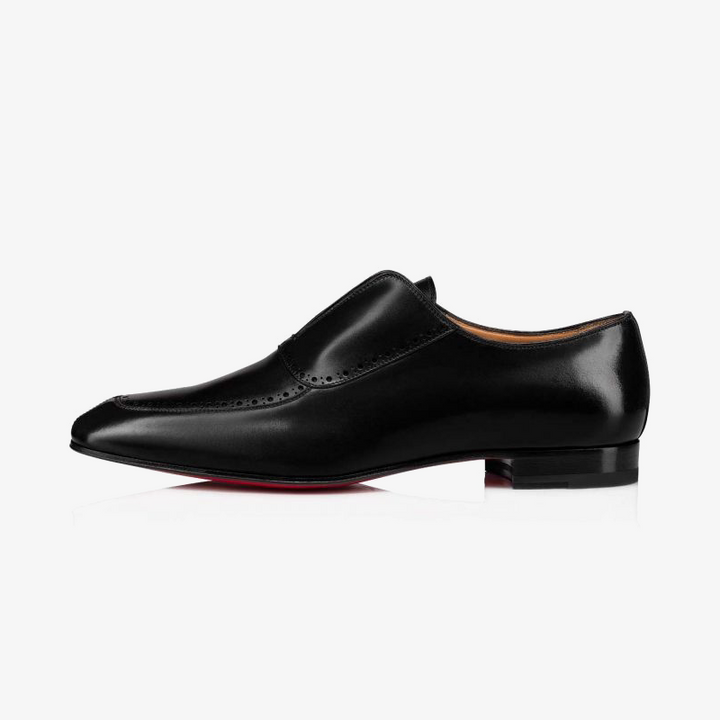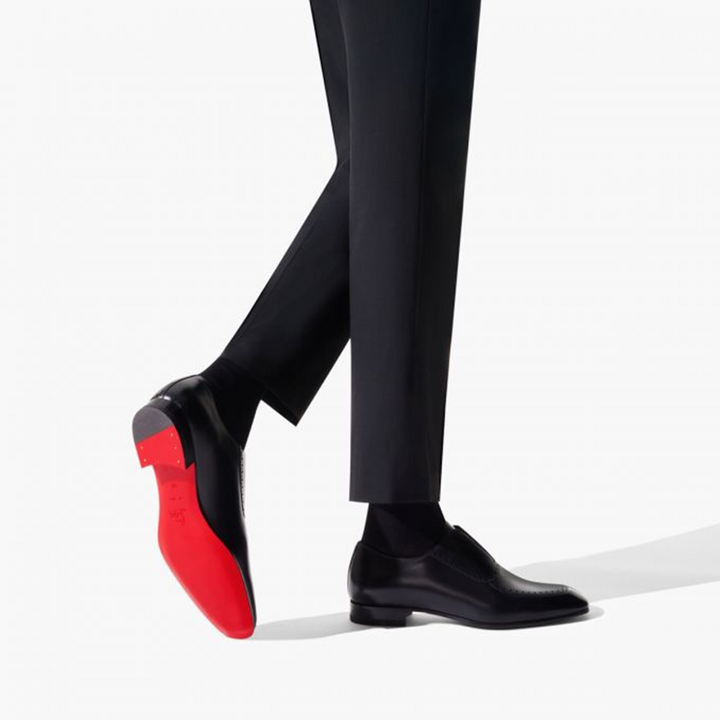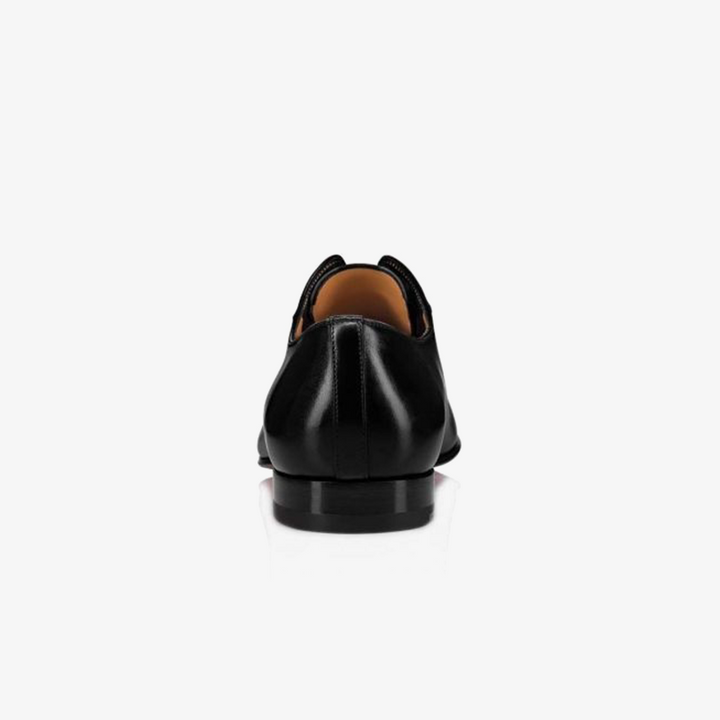 The slender silhouette of this black Oxford shoe showcases impeccable craftsmanship. Made from smooth calf leather, it is set on a slim sole and enhanced with tone-on-tone topstitching. The V-shaped notch by the tongue and delicate perforations add a refined, elegant touch.