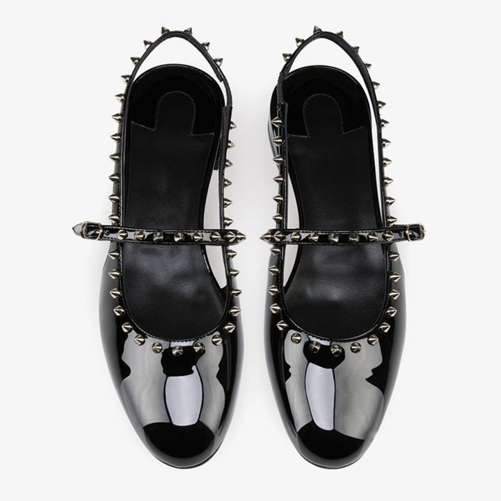 Black Patent Ballerina Flats with Metallic Spikes
