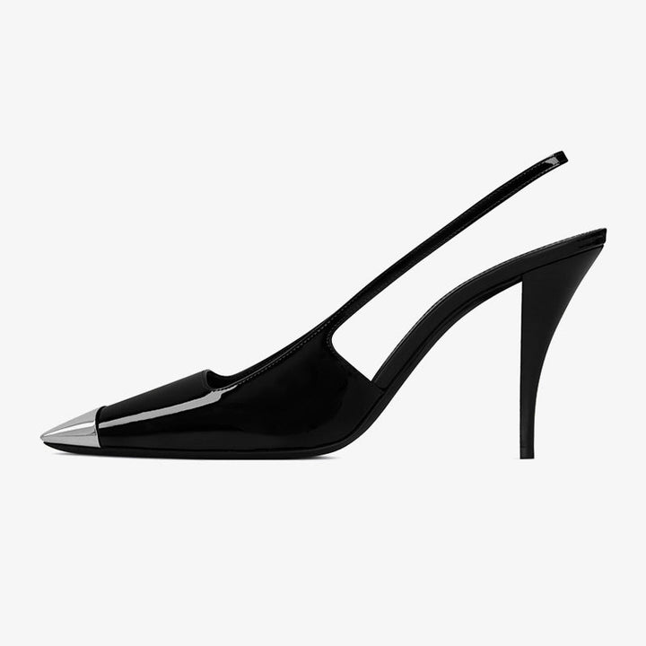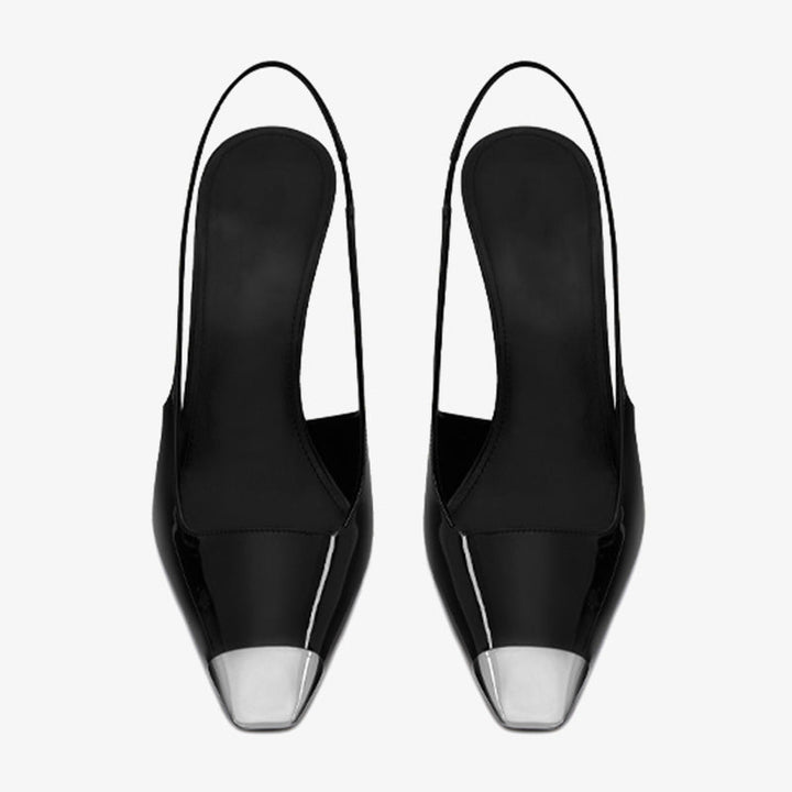 Crafted from glossy black patent leather, these heels feature a bold square toe and a slender stiletto heel for a sleek, modern silhouette. With their striking design and timeless appeal, they’re perfect for evening wear or upscale events. The 80 mm heel adds just the right amount of height, offering both elegance and confidence in every step.