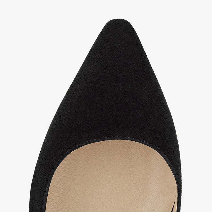 Refined and effortlessly elegant, these suede pumps redefine a classic with a sleek pointed toe and a sculpted stiletto heel. The soft leather lining and sole ensure lasting comfort and durability, making them a versatile staple for any sophisticated wardrobe.The heel height of this pair is 100mm.