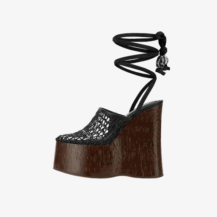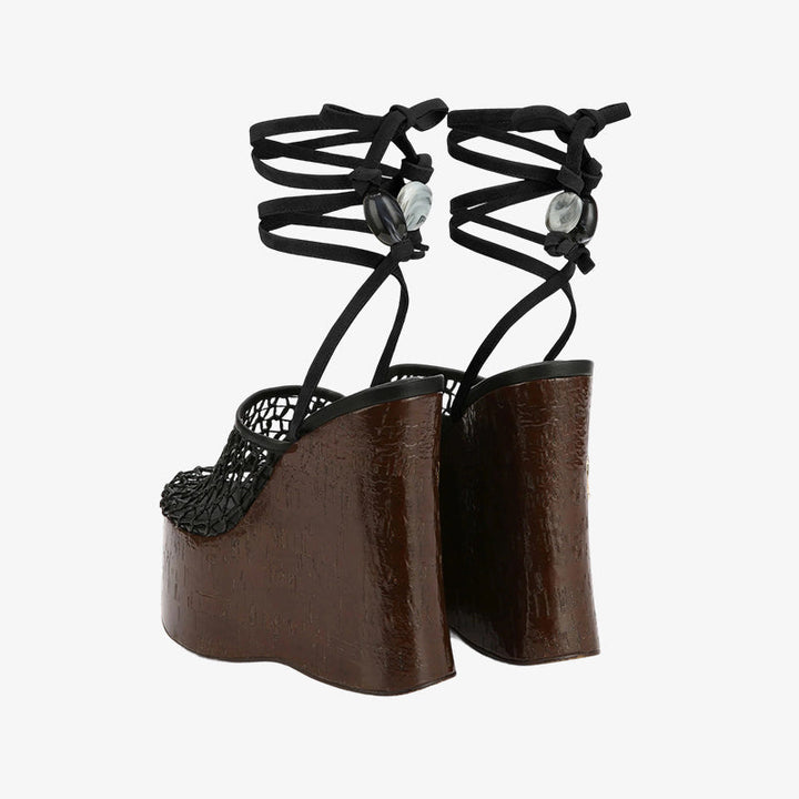 Black Woven Cork Platform Heels