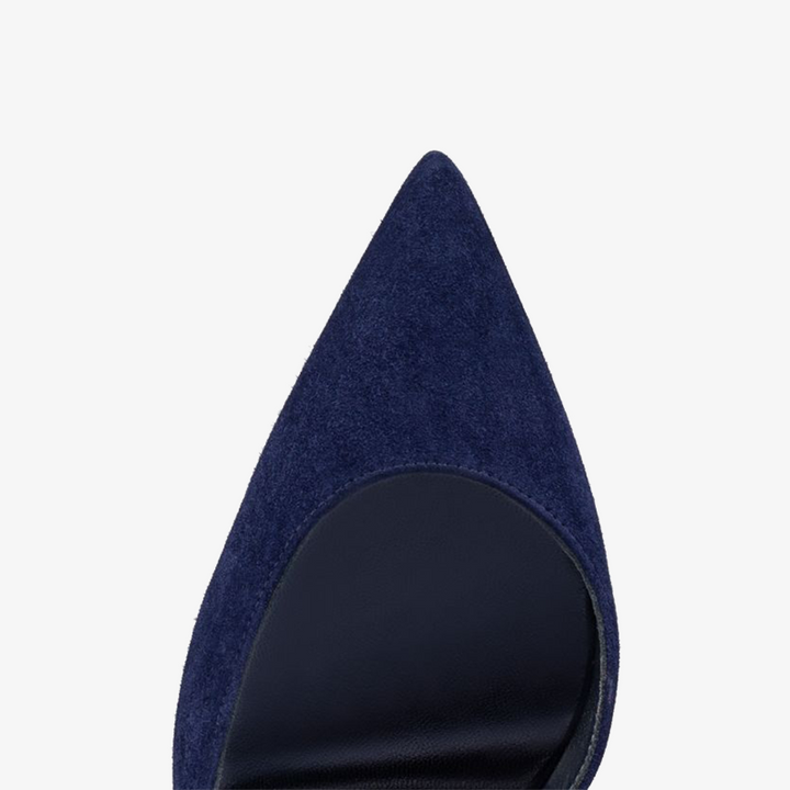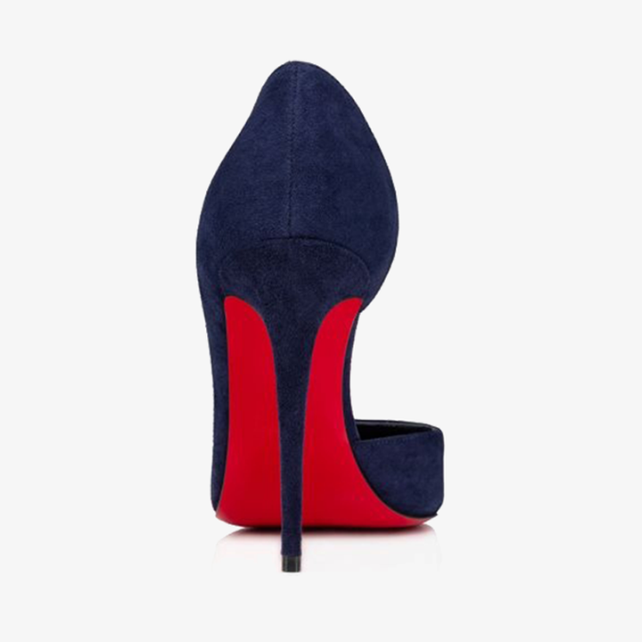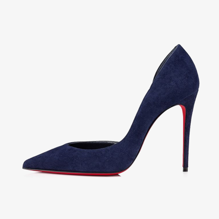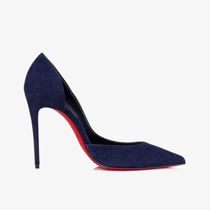 These pumps combine creativity and elegance with their asymmetric lines and daring low-cut vamp that subtly reveals the foot. Featuring a pointed toe and timeless design, the 100 mm stiletto heel enhances the sophisticated look. Crafted entirely in blue veau velours, these pumps offer a refined and stylish touch to any outfit.
