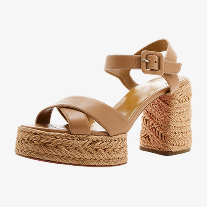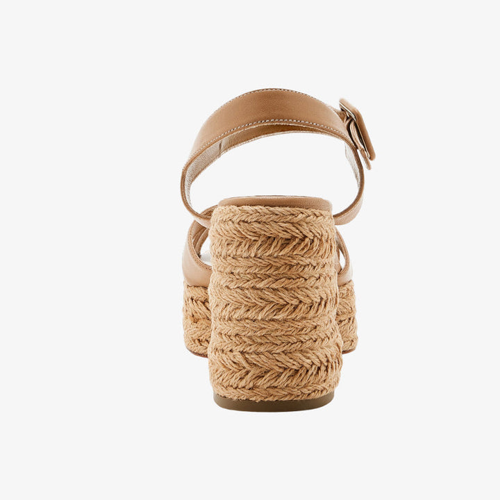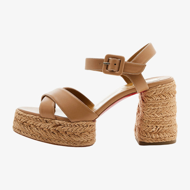 Crafted from smooth leather, these sandals sit on a jute-wrapped platform sole with a chunky block heel for added stability. Finished with a secure buckle fastening, they’re a chic choice for effortless summer style.
