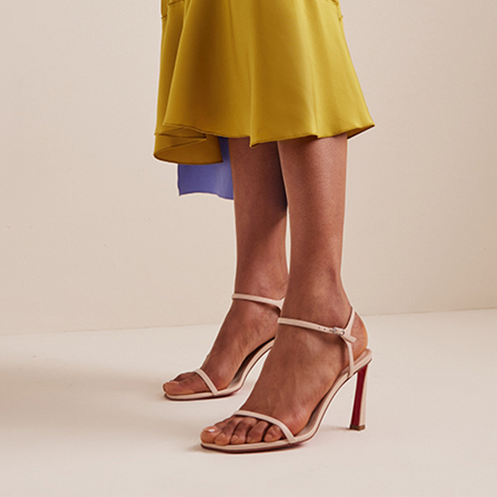Instantly recognizable and fashion-industry famous, this sandal combines a barely-there silhouette with a sleek 100 mm heel. Crafted from premium calf leather, it features a buckle strap fastening for a secure fit. Perfect for pairing with tailored suiting, this style transitions effortlessly from day to night.