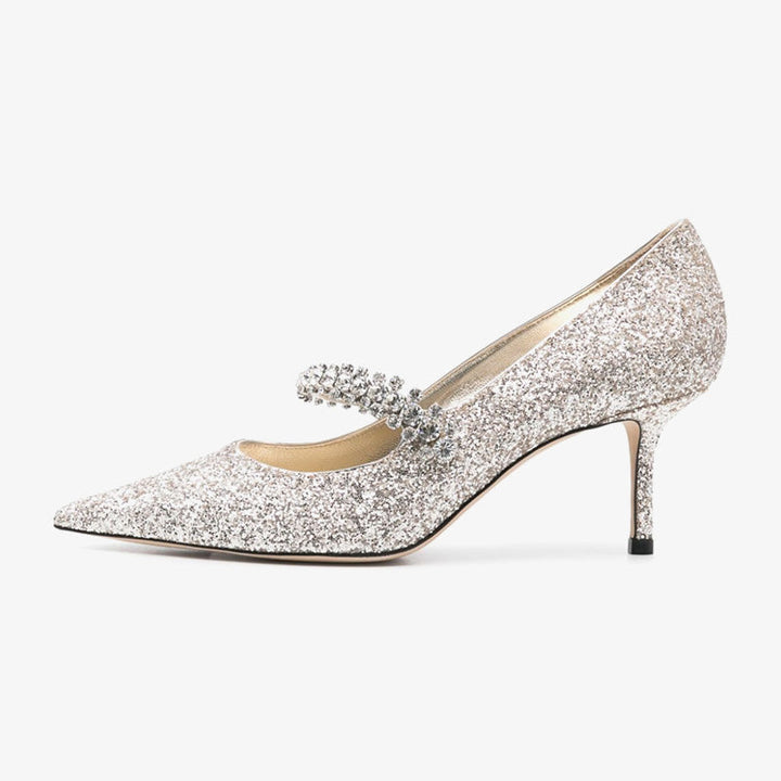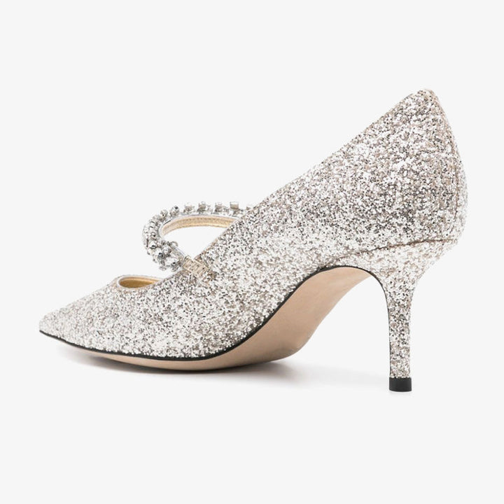 Elegance meets radiance in these refined pumps, featuring a shimmering crystal-embellished upper in a sophisticated neutral hue. Designed with a sleek pointed toe and a slender stiletto heel, this exquisite pair is lined with supple leather for all-day comfort. A perfect choice to elevate any evening ensemble.The heel height of this pair is 85mm.