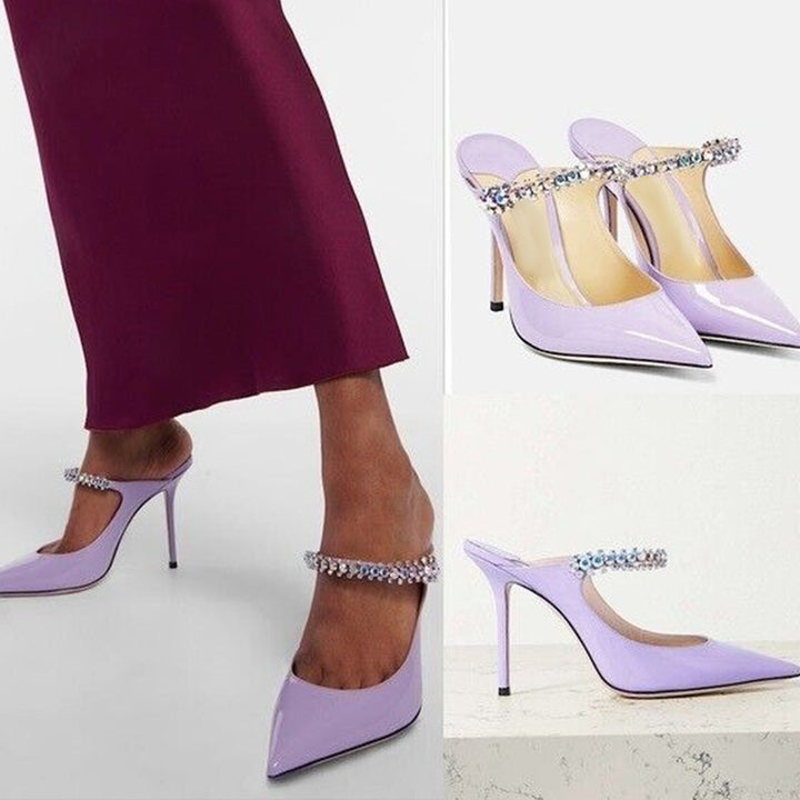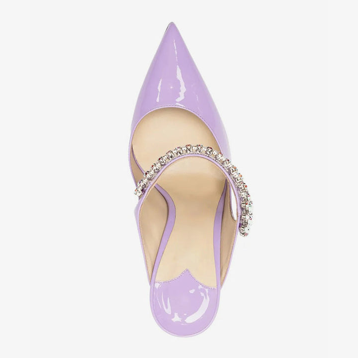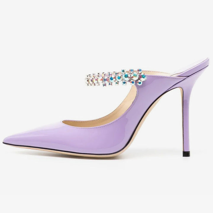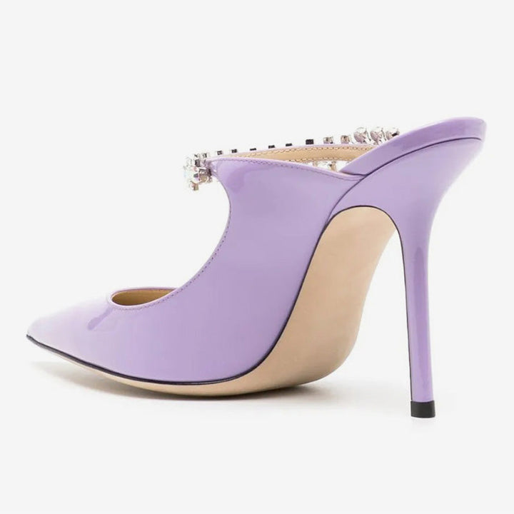 Crafted from 100% calf leather in a striking purple hue, these pointed-toe high-heel mules feature a slip-on design, crystal embellishments, open back, and a slender stiletto heel.Color:purple