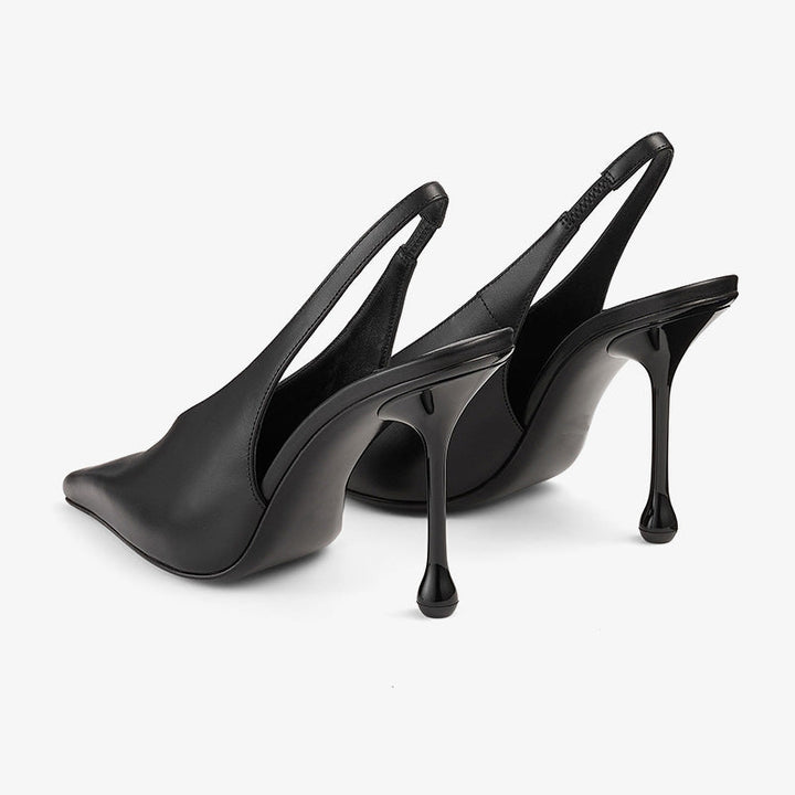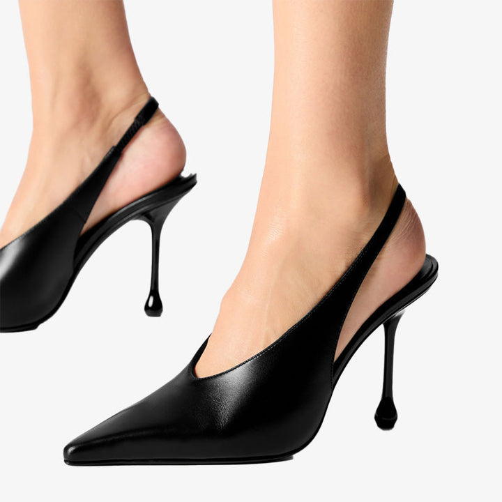 Deep V Leather Slingback Pumps