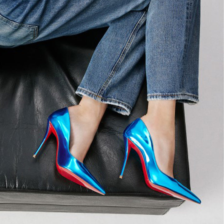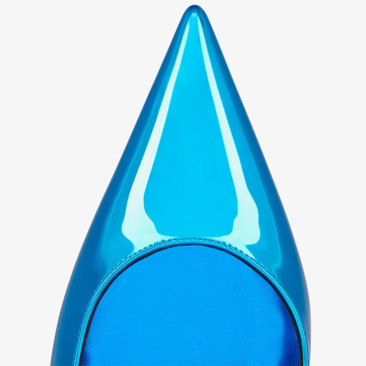 The tapered silhouette of this pump exudes sophistication. Set on a 100mm stiletto heel that reveals the iconic red sole, this model is crafted from electric blue patent. Its elegant vamp delicately reveals the foot, while the new 'Everlasting Red Sole' ensures lasting vibrancy and durability. This model is an online exclusive.