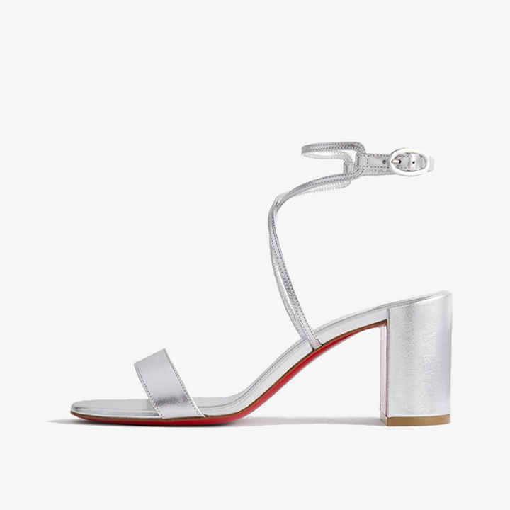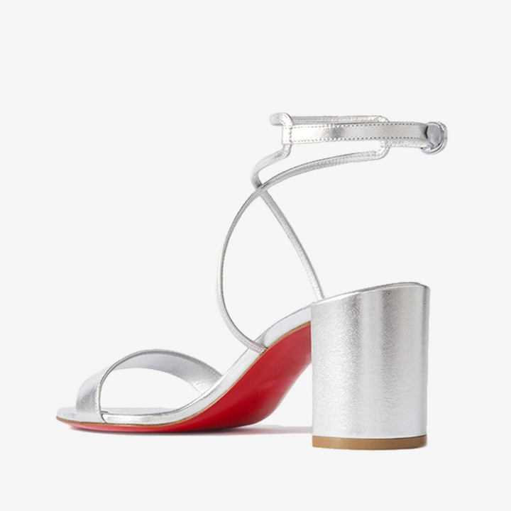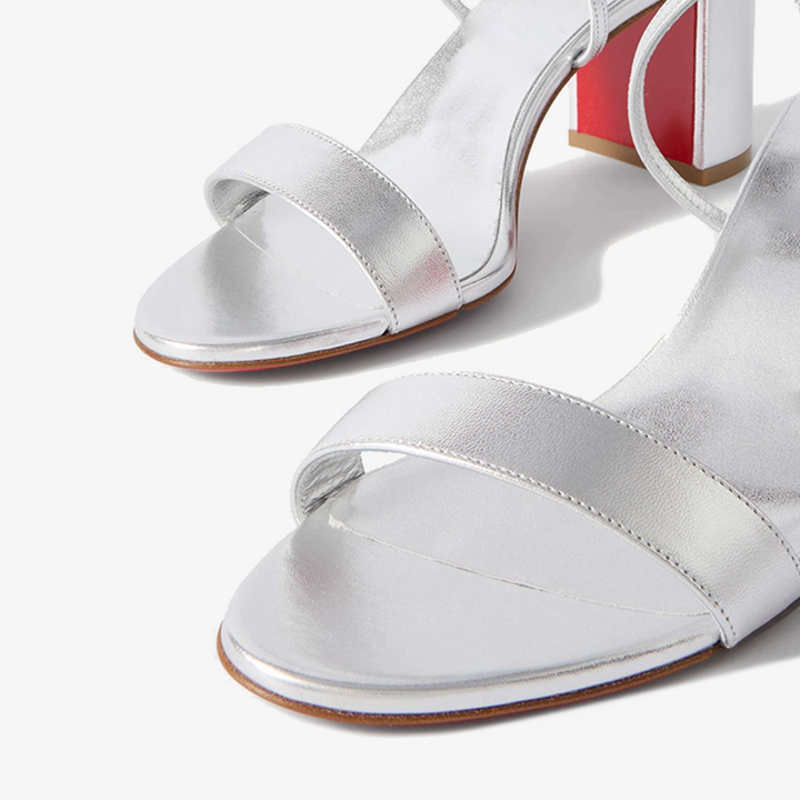 These sandals are the perfect combination of comfort and style. Crafted from silver leather, they feature slim, fixed straps that crisscross around the arch and frame the ankle. Set on comfortable 60 mm heels, these sandals are ideal for everyday elegance.