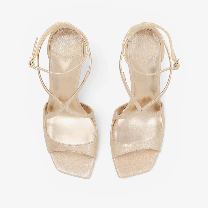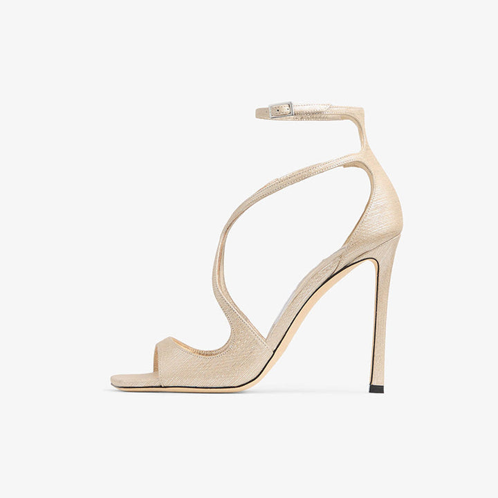 With an elegant golden sheen and a cross-strap design with smooth lines, this pair of high-heeled sandals fully demonstrates the unique sexiness and confidence of women. The stiletto heel design lengthens the leg line, the open-toe cut shows the charming foot shape, and the delicate buckle at the ankle is not only stable and comfortable, but also adds a touch of sophistication. Whether you are attending a dinner party, a wedding or a romantic date, it is your best choice. Color:gold