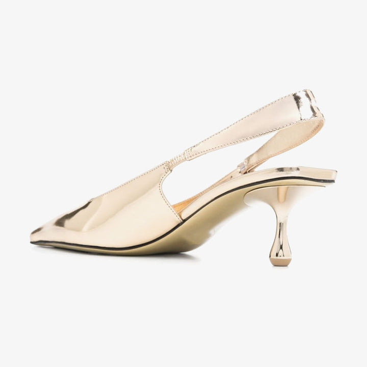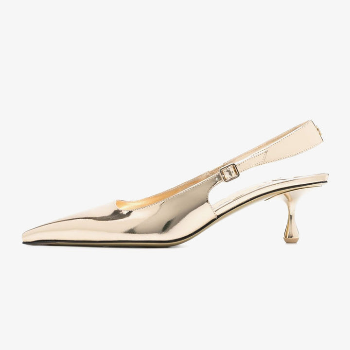 These chic pumps feature a gold-tone calf leather upper with a buckle-fastening slingback strap and a low sculpted heel. The leather sole ensures durability and comfort, making them a stylish and practical choice for any occasion.The heel height of this pair is 60mm.