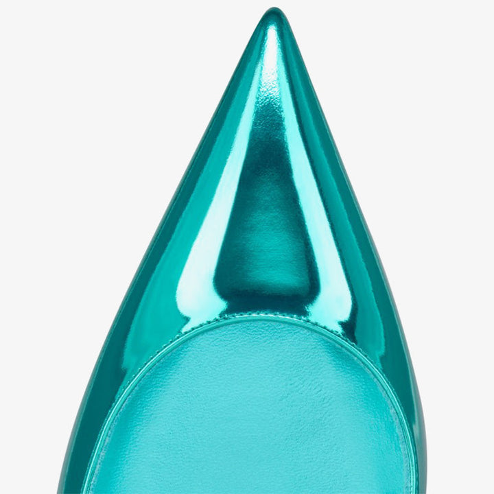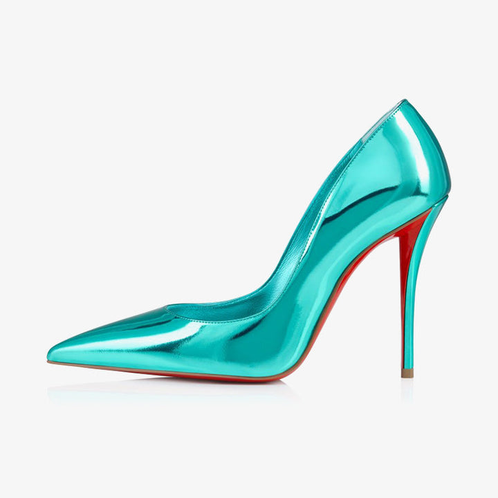 The tapered silhouette of this pump offers refined sophistication. Set on a 100mm stiletto heel that reveals the iconic red sole, this model is crafted from Iceberg blue patent. Its elegant vamp reveals the foot, while the new 'Everlasting Red Sole' ensures lasting durability and vibrant red, thanks to an innovative coating technique.