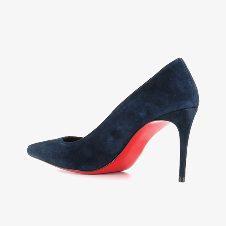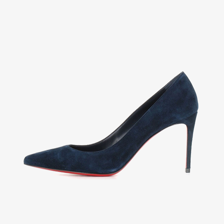 These 80mm pumps combine elegance and boldness. Crafted in luxurious navy blue calf suede, they feature a pointed toe and a slender stiletto heel. Finished with the signature red sole, they offer a perfect blend of timeless style and sophistication.