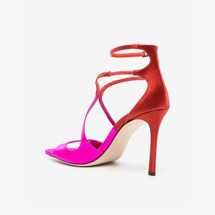Pink and Red Satin Sandals