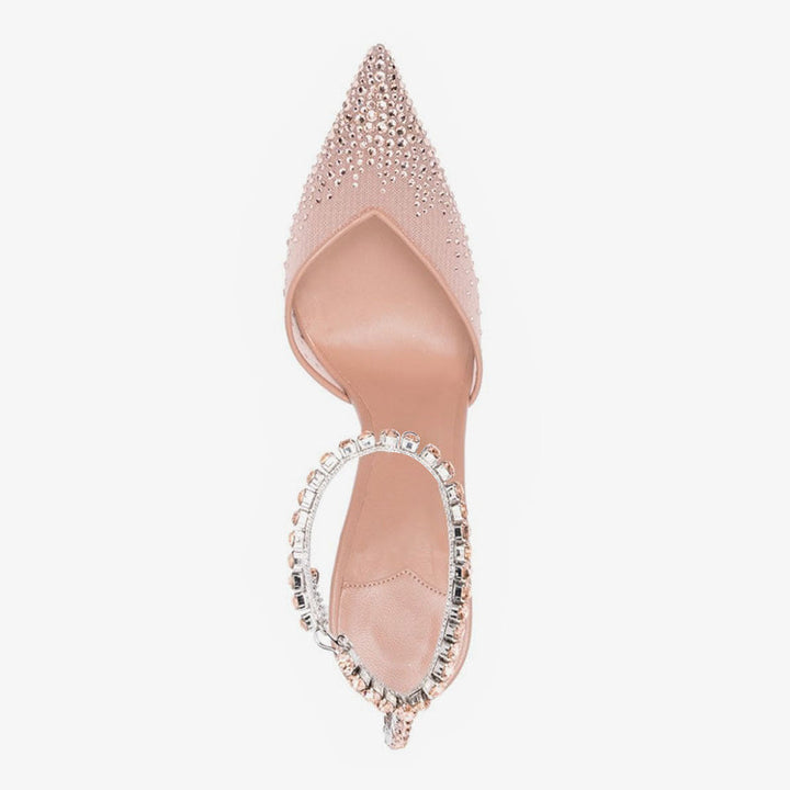 Pink crystal-embellished Tulle Pumps