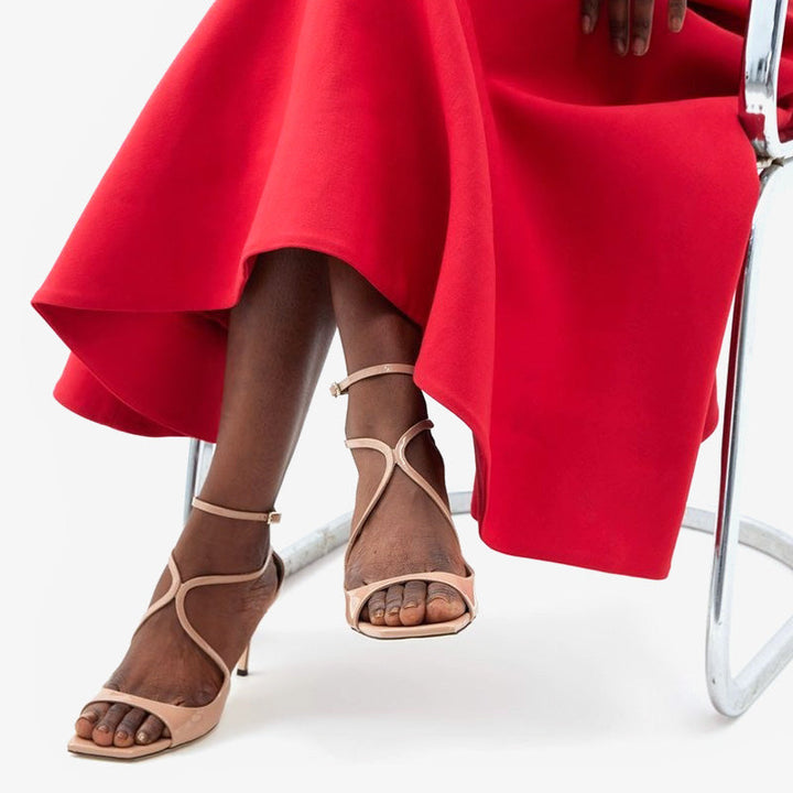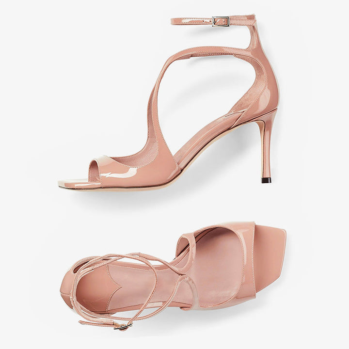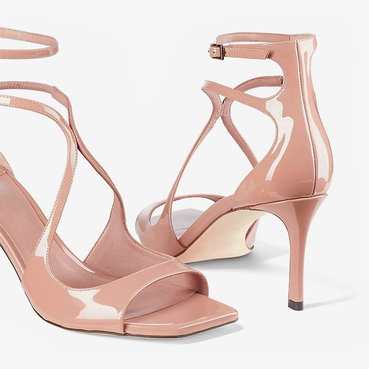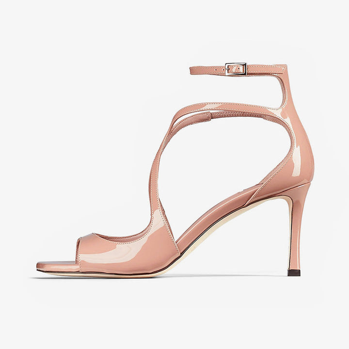 Bold and refined, these pink patent leather sandals feature elegant curved straps, a modern square toe, and a slim 75mm heel. Expertly crafted , they’re finished with a secure ankle strap for a sleek, flattering fit.Color:pink