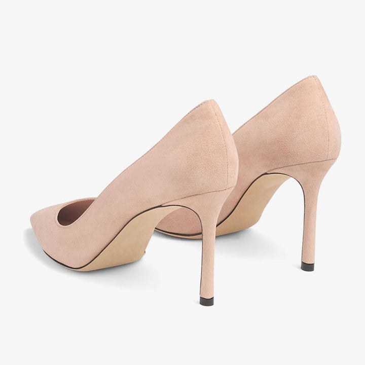These elegant heels are crafted from soft poudre pink suede, offering a timeless and feminine appeal. Featuring a high stiletto heel and a leather outsole, they combine sophistication with comfort, making them a perfect choice for adding a touch of grace to any outfit.The heel height of this pair is 100mm.