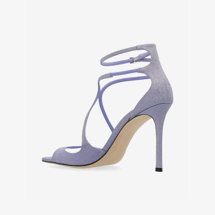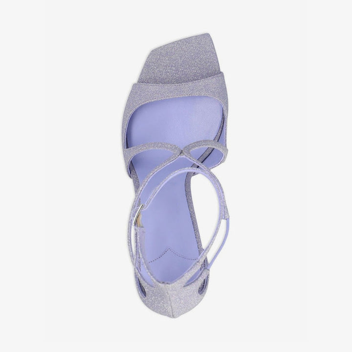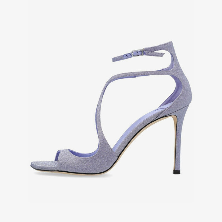Bold and eye-catching, these purple sandals feature a glitter-accented caged design, square open toe, and high 95mm stiletto heel. Crafted with a fabric outer and calf leather lining and sole, they’re finished with a secure buckle-fastening ankle strap for a striking yet refined look.