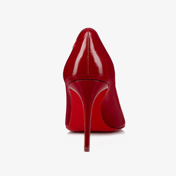 The pump is an iconic model featuring elegant lines. A refined shoe that audaciously enhances the foot with an urban pointed toe and a low-cut vamp. Entirely crafted in red patent calf leather, this model is set on an 80 mm heel for an elevated silhouette. The flexible nature of patent leather ensures superior suppleness, while its natural wrinkled effect may result in slight variations between the photo and the actual product.