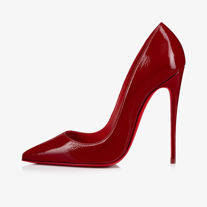 This striking pump is defined by its audacious vamp that elegantly reveals the foot. Crafted entirely from red patent calf leather, it showcases tapered urban lines and a sharply pointed toe. Set on a bold 120 mm architectural heel, the sculpted design adds a modern edge. The supple nature of the patent leather ensures comfort, while natural variations in the wrinkled finish make each pair unique.Color: red