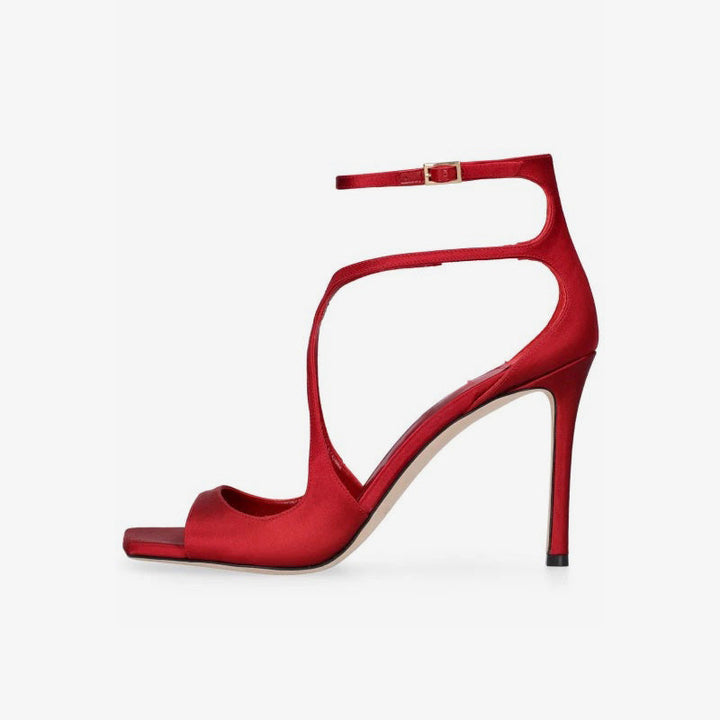 These refined satin sandals feature a 95mm heel, square toe, and an adjustable ankle strap with a metal buckle. Designed for a true-to-size fit, they're finished with a leather lining, insole, and sole for all-day comfort and elegance. Crafted from a luxurious viscose and silk blend.