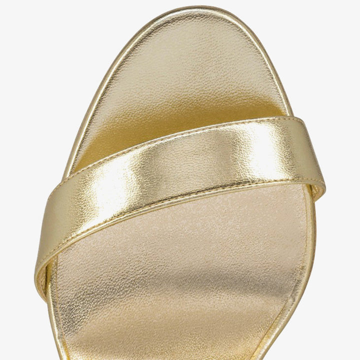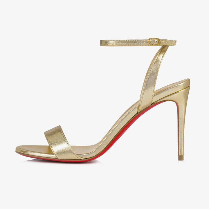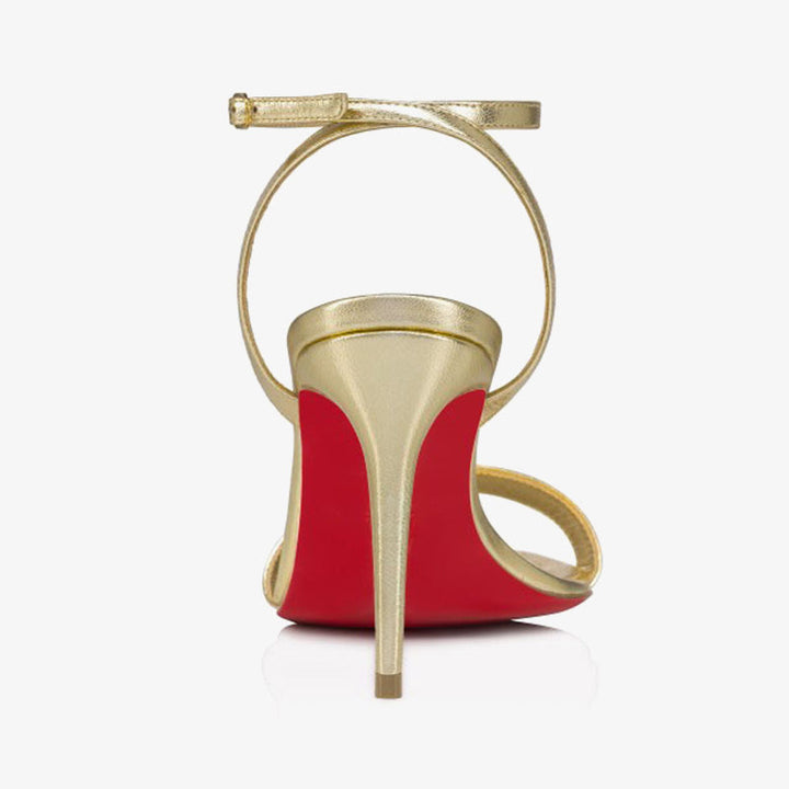 The sleek lines of this elegant sandal highlight expert craftsmanship. Made from laminated Platine silver leather, it blends effortless summer charm with refined sophistication. A delicate strap and a bold high heel enhance the silhouette, while the unique choker-style ankle fastening adds an avant-garde twist. The shimmering Platine color offers a radiant statement, and the high heel provides graceful elevation for any occasion.The heel measures approximately 80 mm。