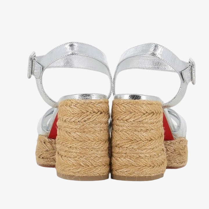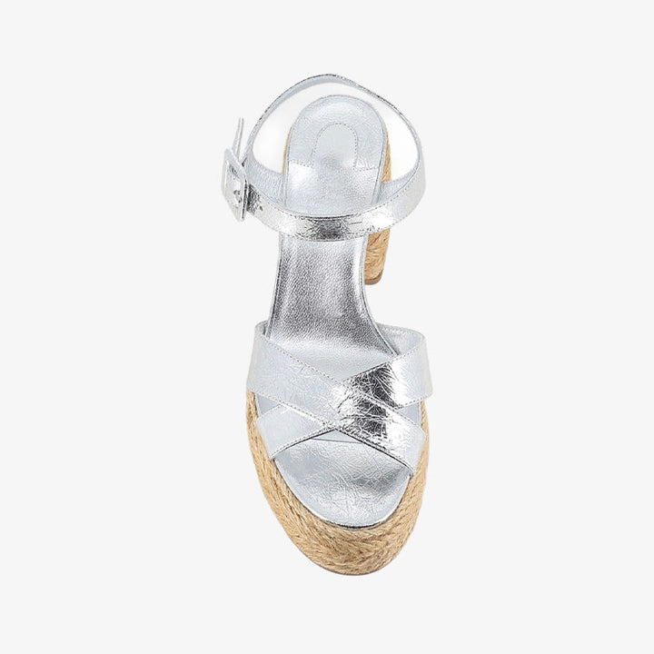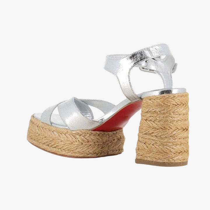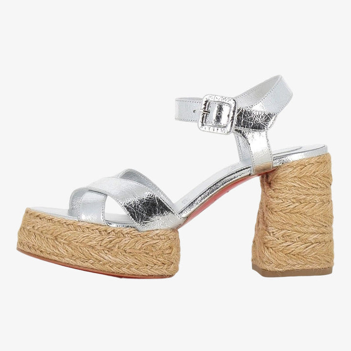 These heeled sandals feature a round open toe, a silver-tone finish, and a secure buckle-fastening ankle strap. Crafted from smooth calf leather with a jute and leather sole, they’re finished with a sturdy block heel for effortless elegance.