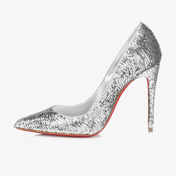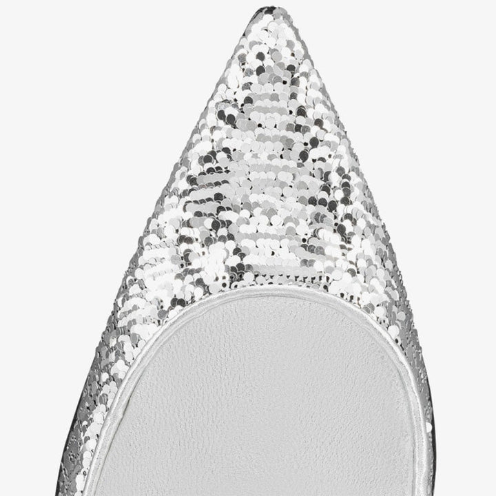A testament to expert craftsmanship, this pump features elegant lines and a boldly cut neckline that reveals the foot with confidence. The pointed toe adds a touch of urban sophistication, while the entire design is crafted from shimmering micro-sequined satin crepe. Set on a 100 mm heel, this refined style is exclusively available online.