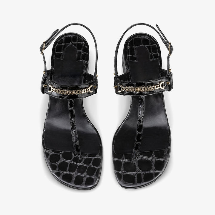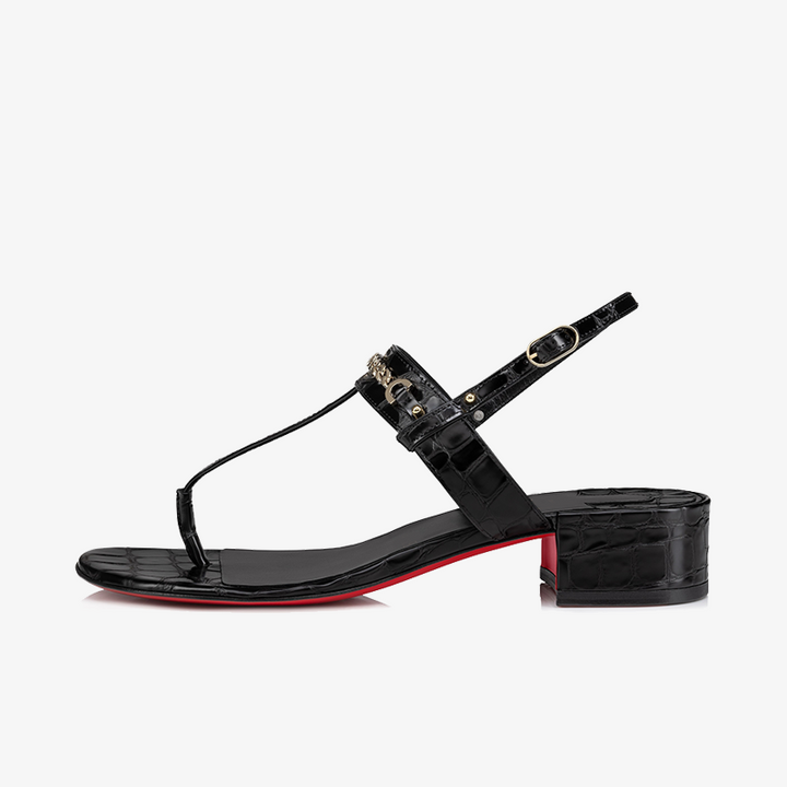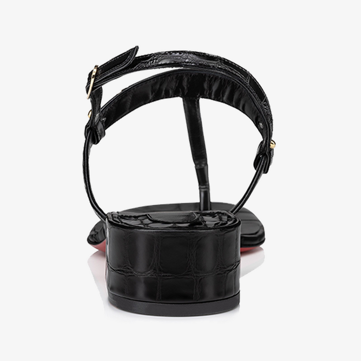 Sleek Black Alligator-Embossed Leather Sandal