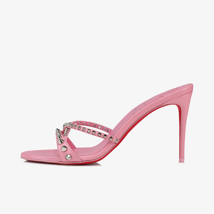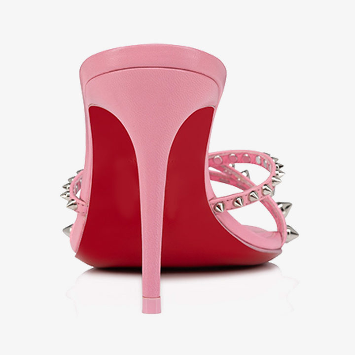 Sleek Light Pink Leather Sandal with Spikes