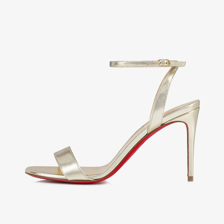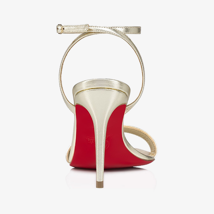 Crafted from laminated Platine silver leather, this sandal features sleek, graceful lines and a delicate ankle strap with an original choker-style fastening. Set on a bold 80 mm heel, it combines modern elegance with daring sophistication.