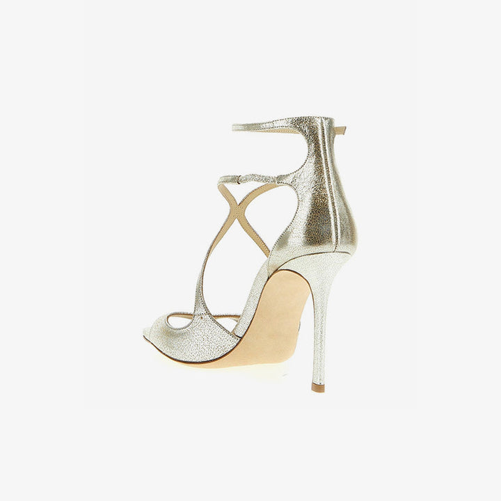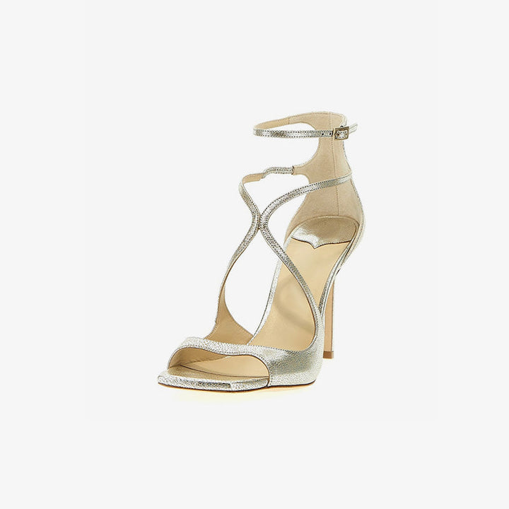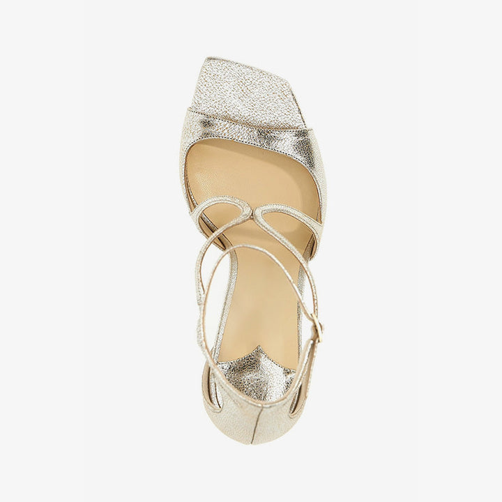 Featuring a rich grained texture and metallic finish, these leather sandals showcase sculpted cut-outs, an open square toe, and a slim 95?mm heel. Finished with a buckle-fastening ankle strap and leather sole, they combine bold modern style with refined craftsmanship. Color:silver