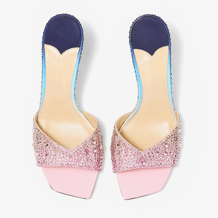Made from satin and embellished with light-catching crystals, these sandals showcase a low-cut vamp, square toe, and sculpted 70mm heel. A refined silhouette that adds a touch of modern glamour.