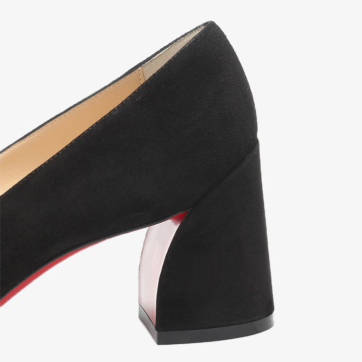 This style is crafted in plush suede and features softly rounded toes for a timeless, feminine silhouette. Set on gently curved 55 mm block heels, these pumps offer a perfect balance of comfort and elegance—ideal for everyday sophistication.