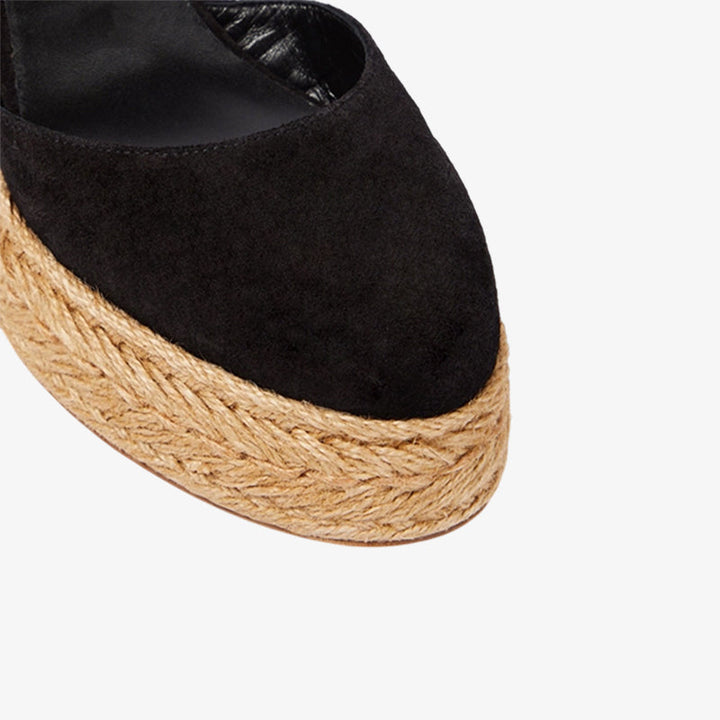 These beach sandals are crafted from soft black calf suede with a leather lining and a durable rubber sole. Designed with a round toe, adjustable buckle closure, and a sturdy block heel, they combine casual comfort with effortless style.