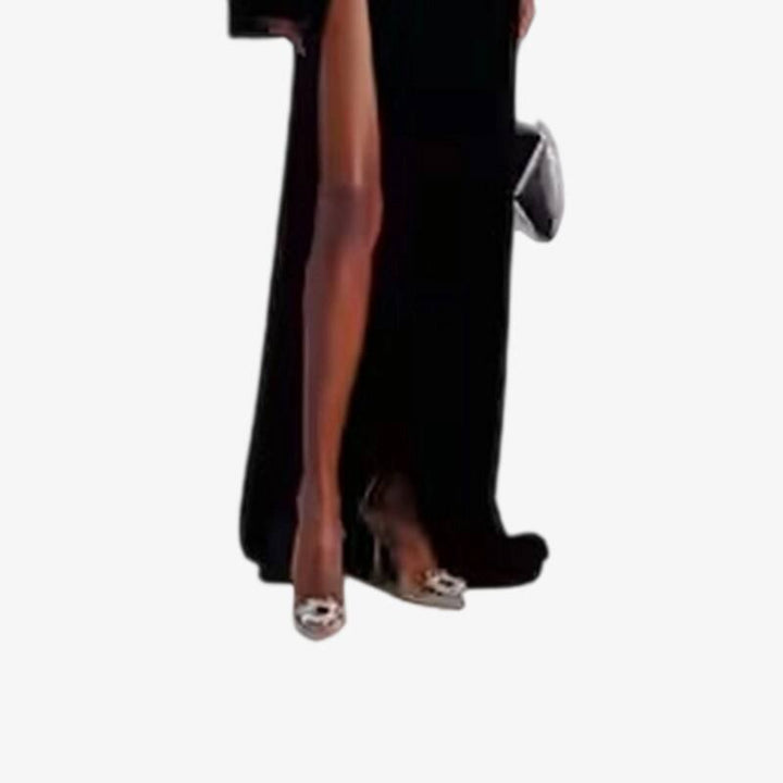 Create an illusion of floating in these elegant transparent PVC pumps, featuring a dazzling crystal sunray embellishment at the pointed toe and a dramatic 95mm heel. The barely-there silhouette offers a modern statement, elevated by the substantial yet sleek heel, while the calf leather lining and sole ensure comfort and wearability. Perfect for making a striking entrance at your next special event.