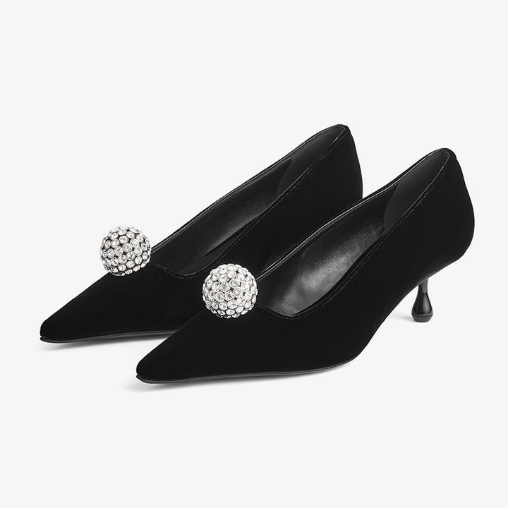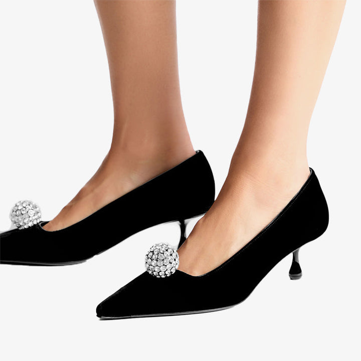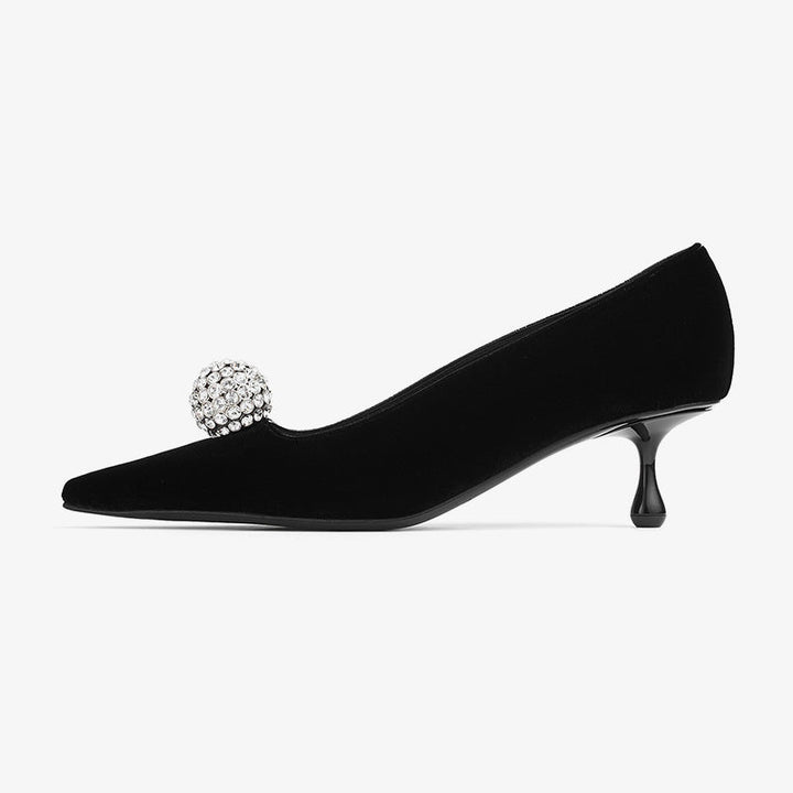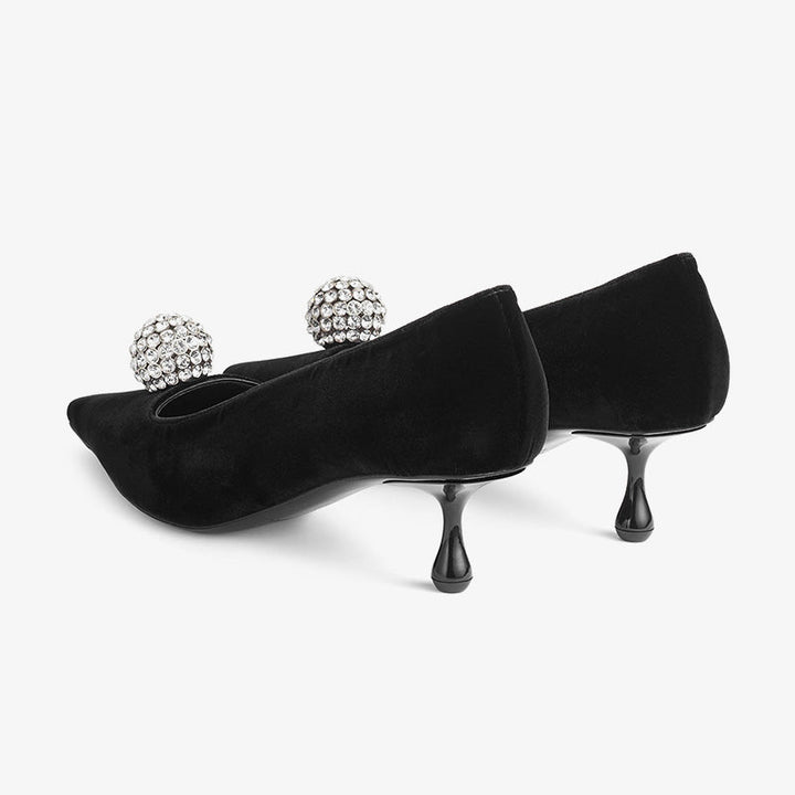 Velvet Pumps with Sculptural Crystal Accent