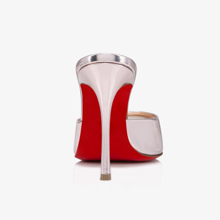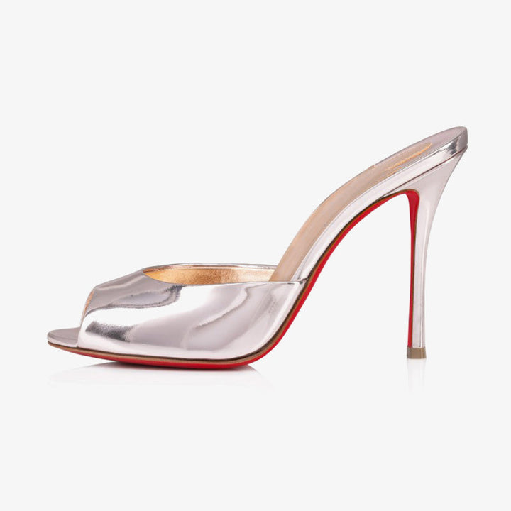 Created to complement any spring or summer look, this elegant high-heeled mule beautifully encases the foot in glossy Vintage Rose laminated calf leather. The 100 mm tapered heel adds a glamorous lift, while the open upper offers a delicate peek at the toes. Finished with the signature red sole—now enhanced by our innovative 'Everlasting Red Sole' coating technique for improved resistance and long-lasting vibrancy—this piece effortlessly blends sophistication and seasonal charm.