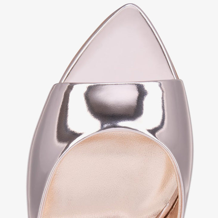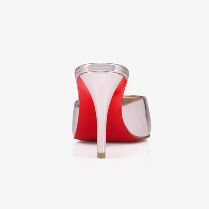 This model features a sophisticated, tapered silhouette set on an 80 mm stiletto heel that reveals the iconic red sole. Crafted in Vintage Rose lamé leather, it includes a padded insole for enhanced comfort and a slender band that delicately reveals the toe. The pump is finished with the innovative 'Everlasting Red Sole'—a coating technique designed to ensure lasting vibrancy and durability.