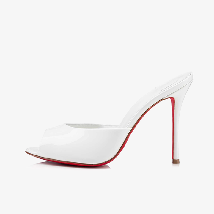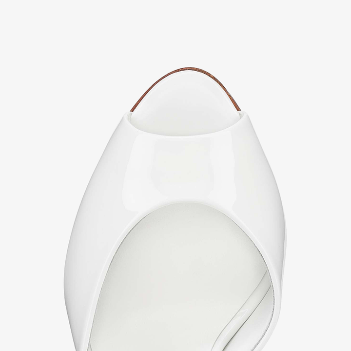 Add a retro flair to your wardrobe with these white patent calf pumps. Featuring a low-cut vamp and peep toe, they sit atop a signature 100 mm heel for a chic and timeless look. Perfect for year styling.