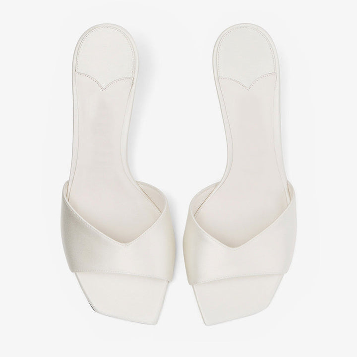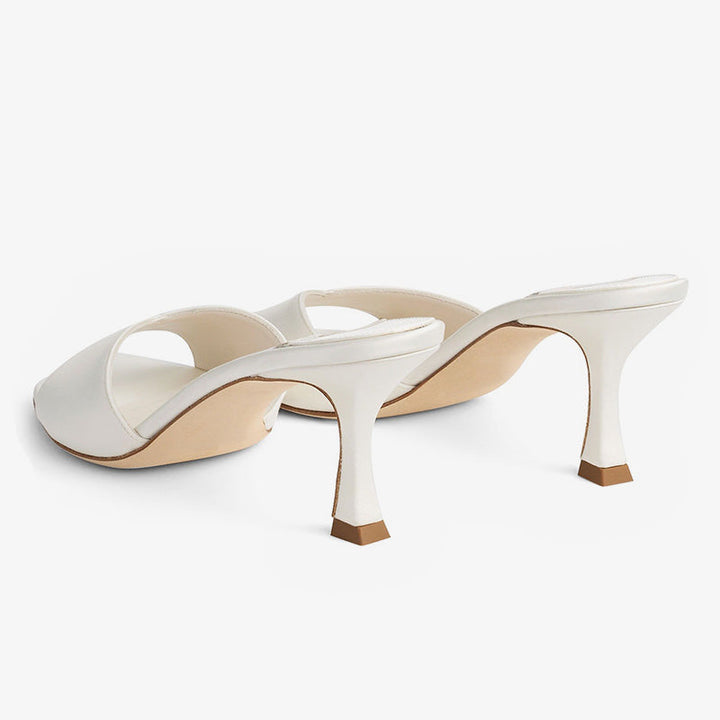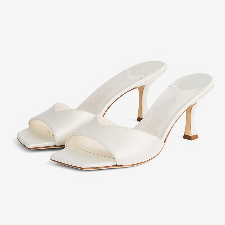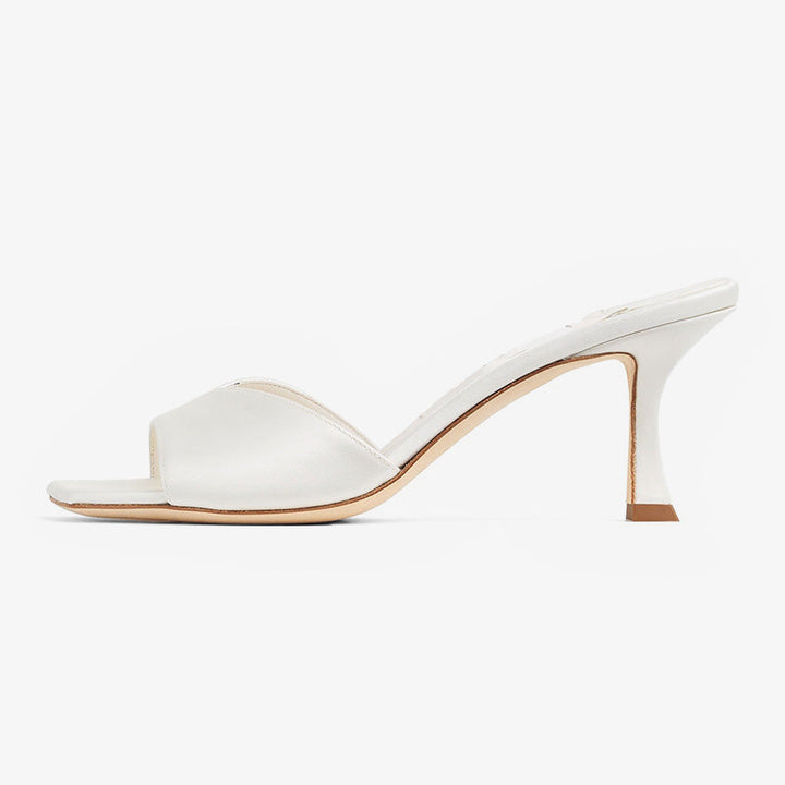 Made from smooth white satin, these elegant sandals feature a low-cut vamp, square toe, and sculpted 70mm heel. Finished with a leather lining and sole, they offer a sleek, modern silhouette.
