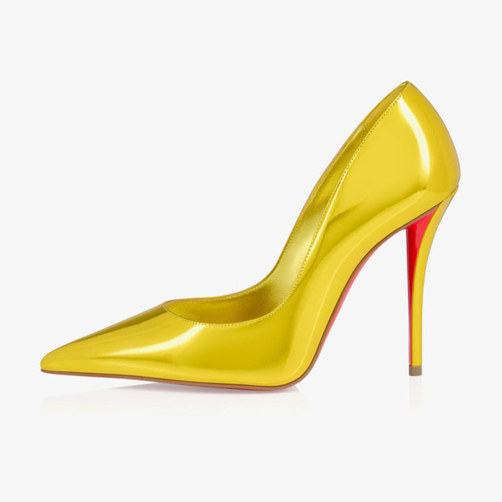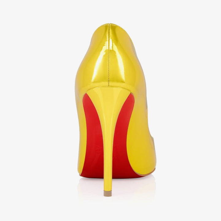 The tapered silhouette of this pump exudes sophistication. Set on a 100mm stiletto heel that reveals the iconic red sole, this model is crafted from yellow patent material. With its elegant vamp that reveals the foot, it features the new 'Everlasting Red Sole,' ensuring resistance and lasting vibrancy for the signature red through an innovative coating technique.