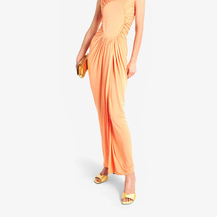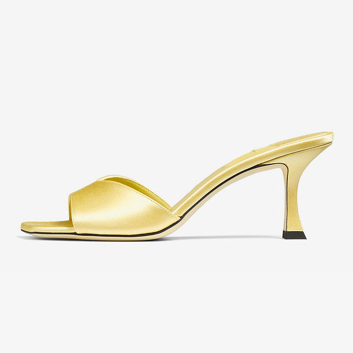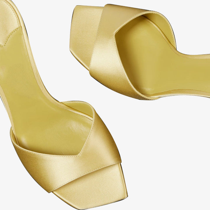 Yellow Satin Curved-Heel Mules